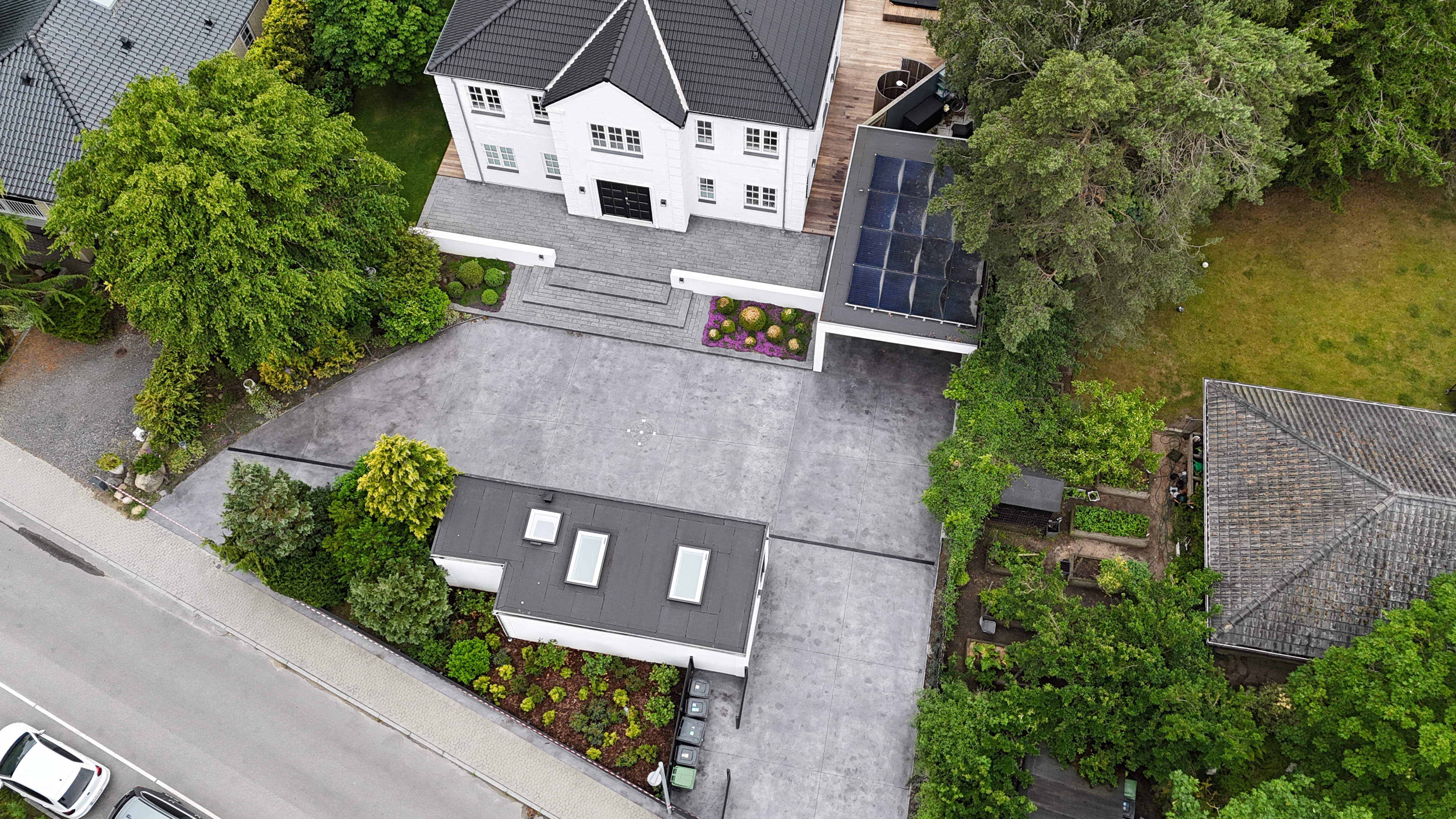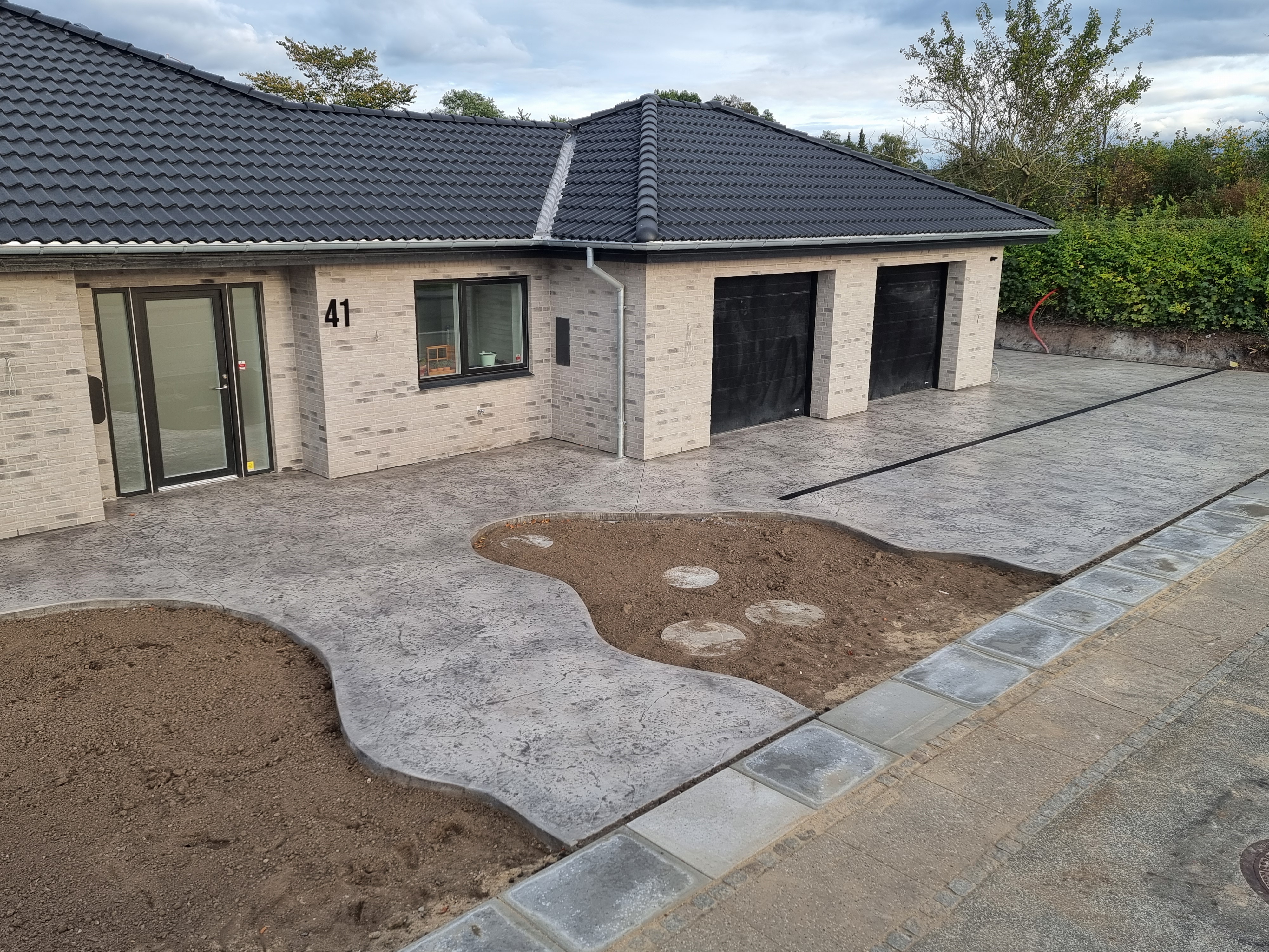 Og i modsætning til planter, der på et tidspunkt går i dvale eller visner, vil en smuk anlagt sti i haven, en lækker terrasse, dit logo nedstøbt i indgangen og en smart parkeringsplads være lige flot og imponerende hele året.